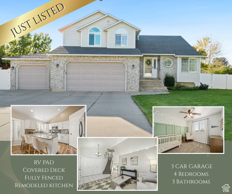 Come Home for the Holidays! This immaculate 4-bedroom home truly has it all. The spacious primary suite features a private bath with a relaxing soaker tub, and the home boasts a 3-car garage plus RV parking. Recently remodeled throughout, you'll find granite countertops in the kitchen and bathrooms, beautiful wood floors, and plantation shutters. The kitchen is a showstopper with white cabinets, a stunning backsplash, stainless steel appliances, and a large bar-perfect for preparing holiday meals. The inviting family room is ideal for entertaining, while the front room offers the perfect spot for your Christmas tree. All bedrooms are generously sized, with the basement offering a private guest bedroom or a great home office. Outside, enjoy a fully fenced yard with a sprinkler system, a covered deck for summer nights, and plenty of space for your fur babies to run. There is also an apple & cherry tree. The oversized 3rd-car garage and RV parking provide room for all your toys, while the huge crawl space gives you more storage than you ever imagined-and even the option to finish another bedroom in the basement. Immaculate inside and out, this home shows with true pride of ownership All rear windows have recently been replaced. Conveniently located minutes from Hill AFB, BAE, and Northrop Grumman. Don't wait-schedule your private showing today, because this one will not last! ** Buyers must be pre-approved with a lender, prior to showings. Square footage figures are provided as a courtesy estimate only and were obtained from county records. Buyer is advised to obtain an independent measurement.